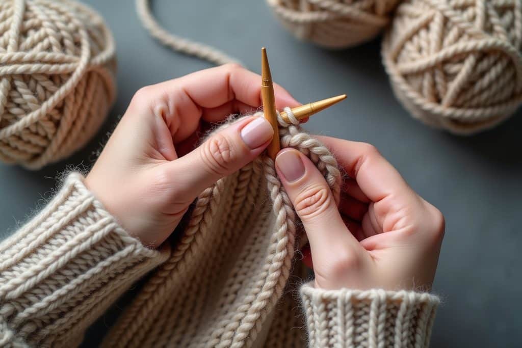 - Bündchenmuster: Stricke abwechselnd rechte und linke Maschen (z.B. 1 rechts, 1 links oder 2 rechts, 2 links).